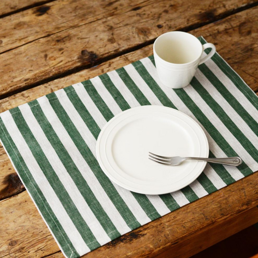 Japanese Green Stripe Linen Placemats Set of 4