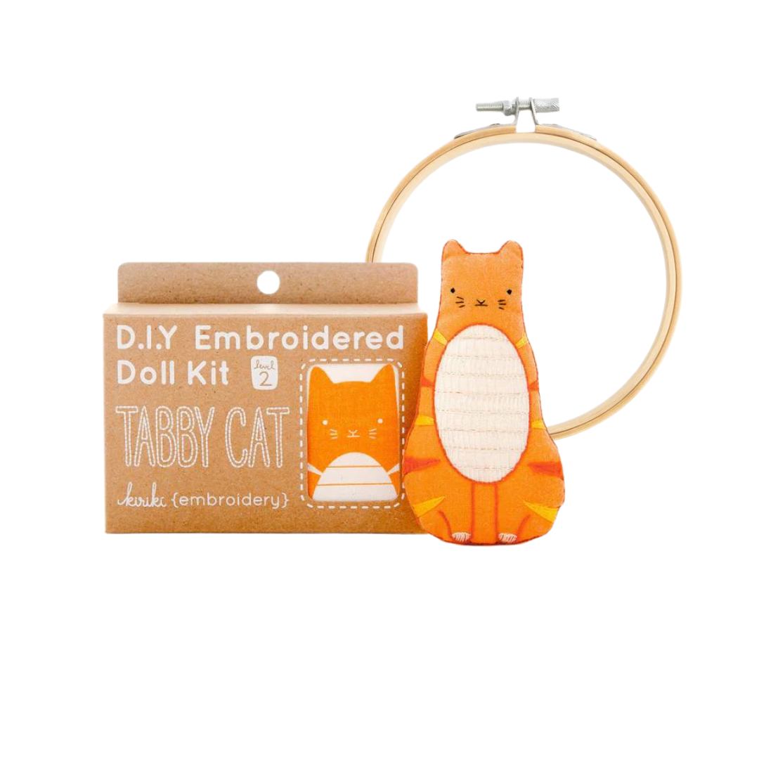 Tabby Cat is a Level 2 pattern, using basic and intermediate stitches. All Kiriki patterns are screen printed by hand with vibrant, water-based inks right onto the fabric so no tracing or transferring is ever required!